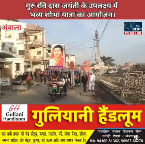 Home / Haryana / अंबाला: गुरु रविदास जयंती के उपलक्ष्य में सिंघा वाला में श्रद्धालुओं ने निकाली भव्य शोभा यात्रा,बड़ी तादाद में लोगों ने टेका माथा……..AmbalaHaryanaअंबाला: गुरु रविदास जयंती के उपलक्ष्य में सिंघा वाला में श्रद्धालुओं ने निकाली भव्य शोभा यात्रा,बड़ी तादाद में लोगों ने टेका माथा……..January 30, 2026 Click Here to See Video Share this ArticlePrevious Articleअंबाला: 18 वर्ष से कम आयु का बच्चा वाहन लेकर आया,तो स्कूल प्रबंधन होगा जिम्मेवार……….Next Articleअंबाला:गांव खेड़ा गनी की पंचायत ने बहु बेटियों को मान सम्मान, घरों के बाहर लगवाई पढ़ी लिखी बहु बेटियों के नाम की नेम प्लेट…….root Related Posts अंबाला पहुंची महिला आयोग की चेयरपर्सन: 22 शिकायतों का किया निपटार ... March 11, 2026 अंबाला: शहर के शोरूम्स में दीवार तोड़कर चोरी करने वाले गैंग का पर ... March 11, 2026 अंबाला में 25 दिन में मिलेगा एक घरेलू सिलेंडर, रात 10 से सुबह 6 ब ... March 11, 2026