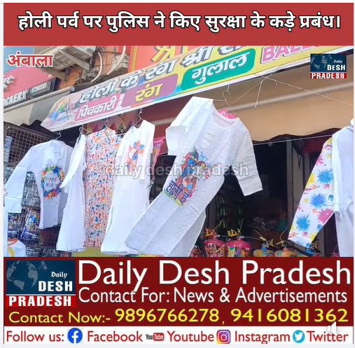 Home / Haryana / अंबाला: होली के त्यौहार पर पुलिस रहेगी चौकन्ना,एस पी ने दिए सख्त निर्देश……..AmbalaBreaking NewsHaryanaअंबाला: होली के त्यौहार पर पुलिस रहेगी चौकन्ना,एस पी ने दिए सख्त निर्देश……..March 2, 2026 Click Here to See Video Share this ArticlePrevious Articleग्वालियर: यमराज बन गया ट्रक चालक, हादसा देख आपकी भी रुक जाएगी सांस..……root Related Posts अंबाला: धुलकोट इंडस्ट्रियल पार्क के व्यापारियों ने किया होली मिलन ... March 1, 2026 भाजपा के राष्ट्रीय प्रवक्ता राजीव जेटली का कांग्रेस नेता विजेंद्र ... February 28, 2026 अंबाला: अंबाला पहुंचे आप के पूर्व सांसद सुशील गुप्ता,बोले पूरे दम ... February 28, 2026