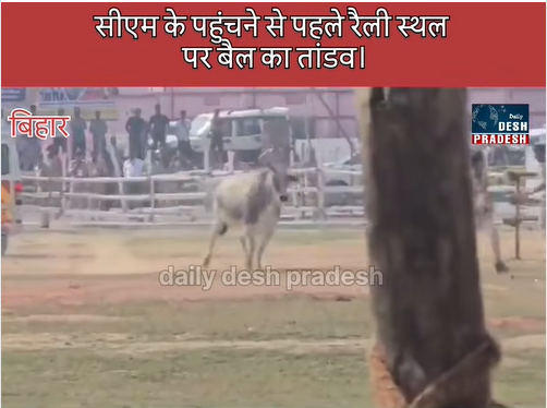 बिहार: सीएम नीतीश कुमार की रैली स्थल में घुसे सांड ने मचाया उत्पात,पुलिस कर्मियों में देखिए कैसे मची भगदड़…..?