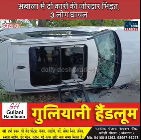 भीषण हादसा: अंबाला में दो कारों की जोरदार भिड़ंत, 3 लोग घायल……..