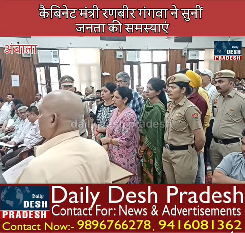अंबाला: कैबिनेट मंत्री रणबीर गंगवा ने ली कष्ट निवारण समिति की बैठक,13 में से 9 शिकायतों का मौके पर निपटारा….…..