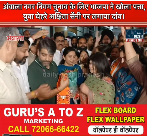 अंबाला से भाजपा मेयर प्रत्याशी अक्षिता सैनी का पूर्व मंत्री असीम गोयल एवं कार्यकर्ताओं ने किया जोरदार स्वागत……..