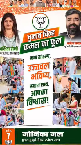 अंबाला निगम चुनाव: पूर्व मंत्री असीम गोयल ने संभाला मोर्चा, मेयर प्रत्याशी अक्षिता सैनी के लिए माँगे वोट…..